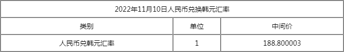 2022年11月10日银行间外汇市场人民币汇率中间价为:1美元对人民币7.2422元,1欧元对人民币7.2523元,100日元对人民币4.9450元,1港元对人民币0.92261元,1英镑对人民币8.2302元,1澳大利亚元对人民币4.6531元,1新西兰元对人民币4.2615元,1新加坡元对人民币5.1631元,1瑞士法郎对人民币7.3605元,1加拿大元对人民币5.3525元,人民币1元对0.65006马来西亚林吉特,人民币1元对8.4254俄罗斯卢布,人民币1元对2.4540南非兰特,人民币1元对188.80韩元,人民币1元对0.50760阿联酋迪拉姆,人民币1元对0.51974沙特里亚尔,人民币1元对55.5717匈牙利福林,人民币1元对0.65090波兰兹罗提,人民币1元对1.0263丹麦克朗,人民币1元对1.5036瑞典克朗,人民币1元对1.4334挪威克朗,人民币1元对2.57078土耳其里拉,人民币1元对2.7096墨西哥比索,人民币1元对5.0898泰铢。