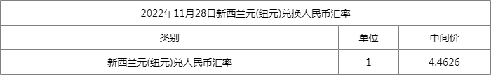1新西兰元=4.4626人民币