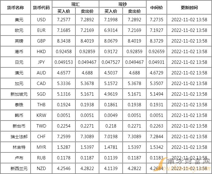 平安银行外汇牌价表一览 11月2日平安银行人民币汇率走势?下面同南方财富网畅想君来看看。