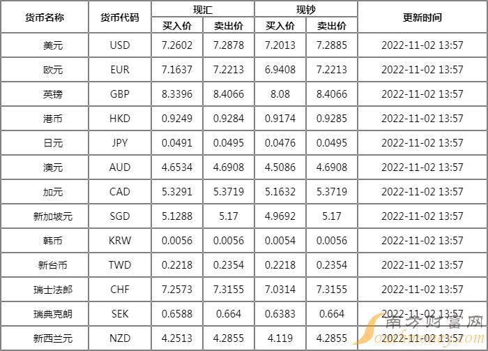 兴业银行外汇牌价表一览 11月2日兴业银行人民币汇率走势?下面同南方财富网笔记君来看看。