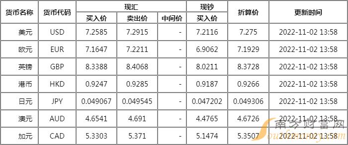 xm外汇:邮储银行外汇牌价表一览 11月2日邮储银行人民币汇率多少?