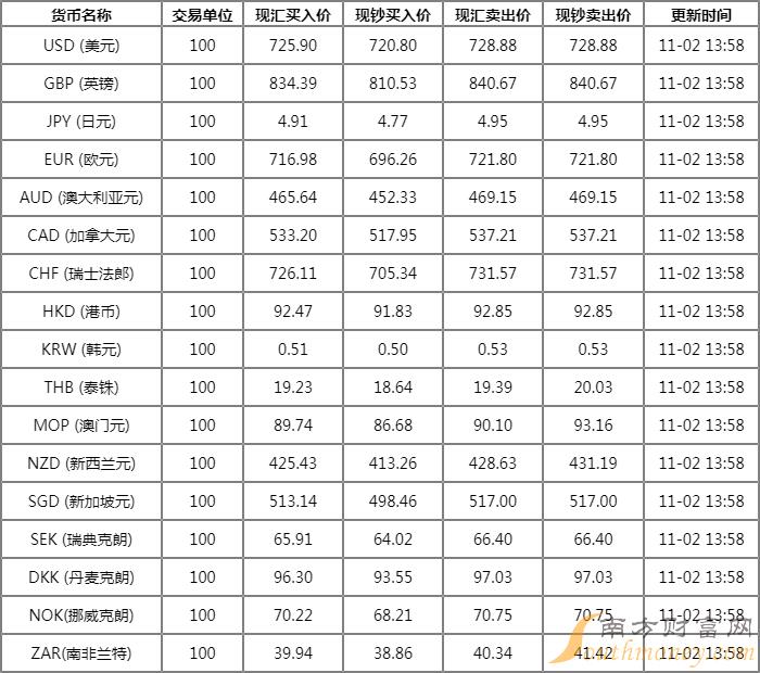 xm外汇:建设银行外汇牌价表一览 11月2日建设银行人民币汇率多少?