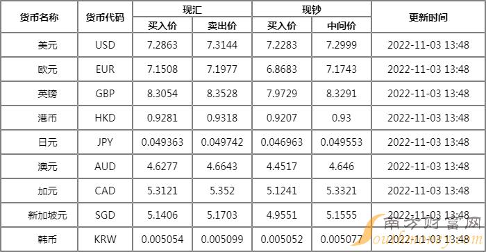 xm外汇:恒丰银行外汇牌价表(2022年11月3日)