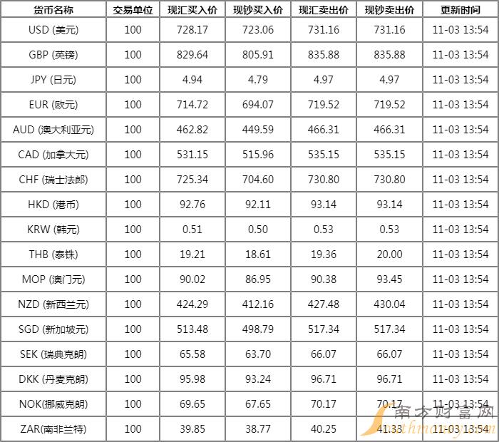 xm外汇:建设银行外汇牌价表一览11月3日 建设银行人民币汇率走势