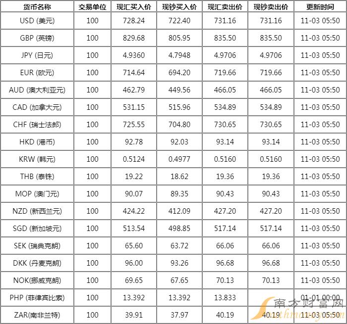 xm外汇:中国工商银行外汇牌价表11月3日工行人民币汇率走势