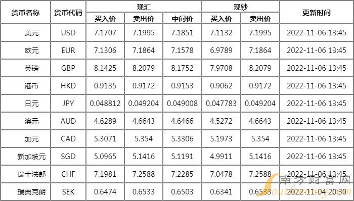 华夏银行外汇牌价表11月6日 华夏银行人民币汇率多少?下面同南方财富网微聊君来看看。