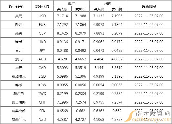 兴业银行外汇牌价表11月6日 兴业银行人民币汇率多少?下面同南方财富网李才君来看看。