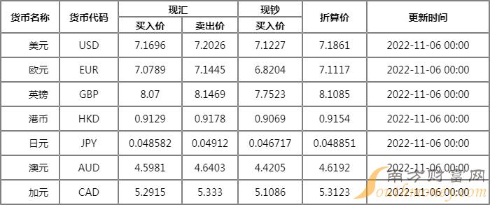 邮储银行外汇牌价11月6日 邮储银行人民币汇率多少?下面同南方财富网焦点君来看看。