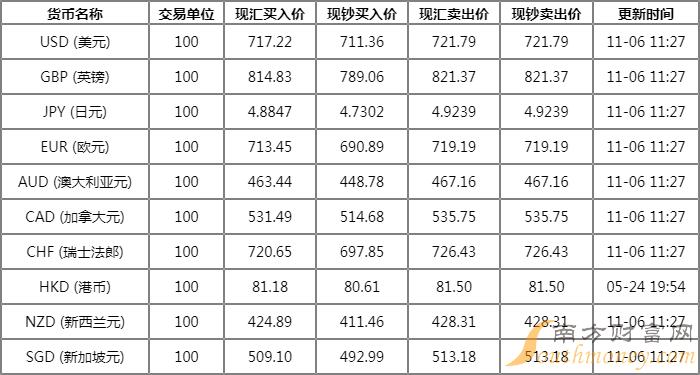 xm外汇:中国招商银行外汇牌价11月6日 招行人民币对美元汇率多少?