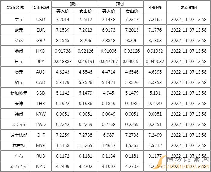 平安银行外汇牌价表查询 11月7日平安银行人民币汇率多少?下面同南方财富网微聊君来看看。