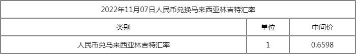 1人民币=0.6598马来西亚林吉特
