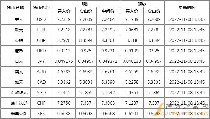 华夏银行外汇牌价表11月8日 华夏银行人民币汇率是多少?下面同南方财富网笔记君来看看。