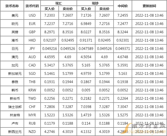 xm外汇:平安银行外汇牌价表11月8日 平安银行人民币汇率是多少?