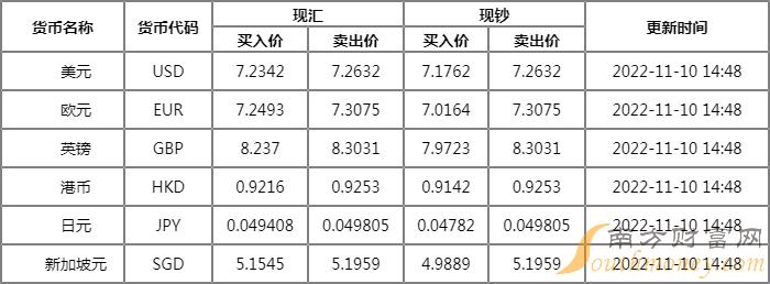 渤海银行外汇牌价表 11月10日渤海银行人民币汇率多少?下面同南方财富网看点君来看看。