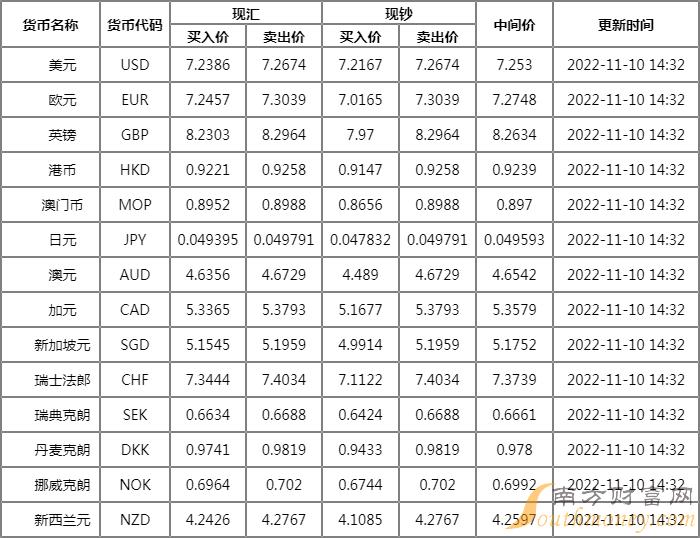 广发银行外汇牌价表 11月10日广发银行人民币汇率多少?下面同南方财富网焦点君来看看。