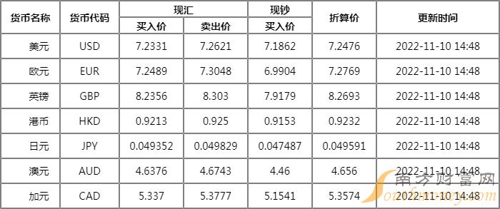 邮储银行外汇牌价表 11月10日邮储银行人民币汇率多少?下面同南方财富网李才君来看看。