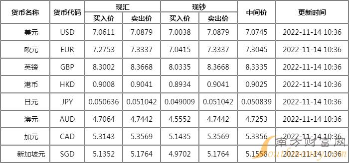 2022年11月14日上海农村商业银行外汇牌价一览 上海农村商业银行人民币汇率多少?下面同南方财富网大耳朵来看看。