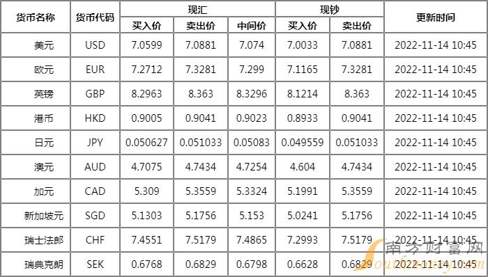 2022年11月14日华夏银行牌价表一览 华夏银行人民币汇率多少?下面同南方财富网小释来看看。
