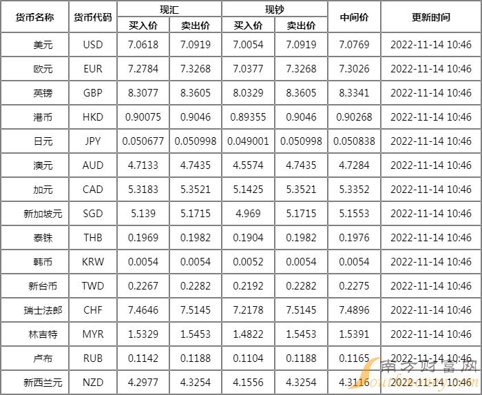 2022年11月14日平安银行牌价表一览 平安银行人民币汇率多少?下面同南方财富网圈圈来看看。