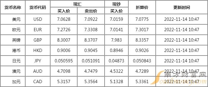邮储银行外汇牌价11月14日 邮储银行人民币汇率多少?下面同南方财富网袋袋君来看看。