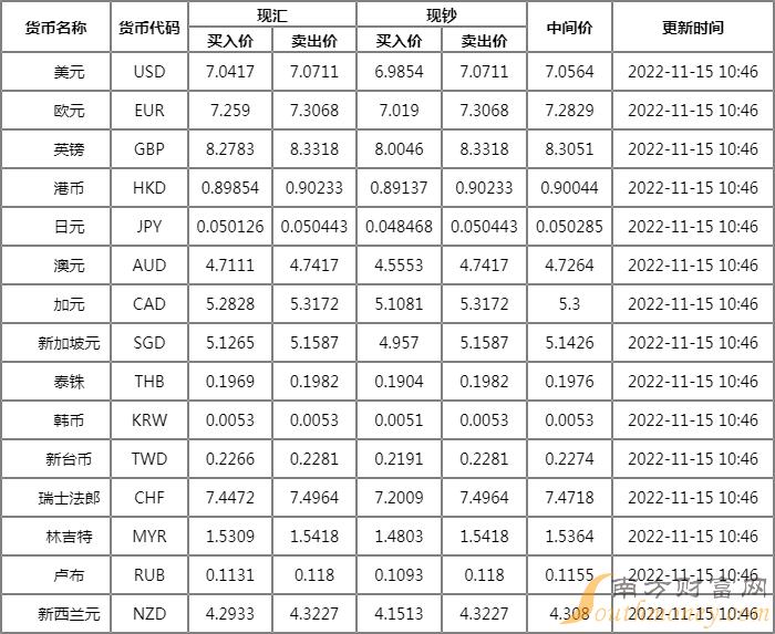 平安银行外汇牌价表11月15日 平安银行人民币对美元汇率多少?下面同南方财富网钱袋子来看看。