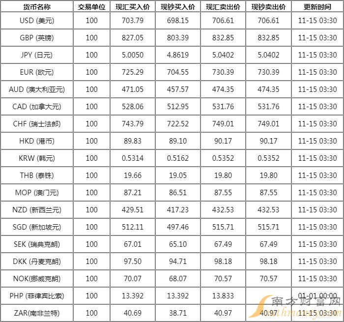 xm外汇:中国工商银行外汇牌价表11月15日工行人民币对美元汇率多少?