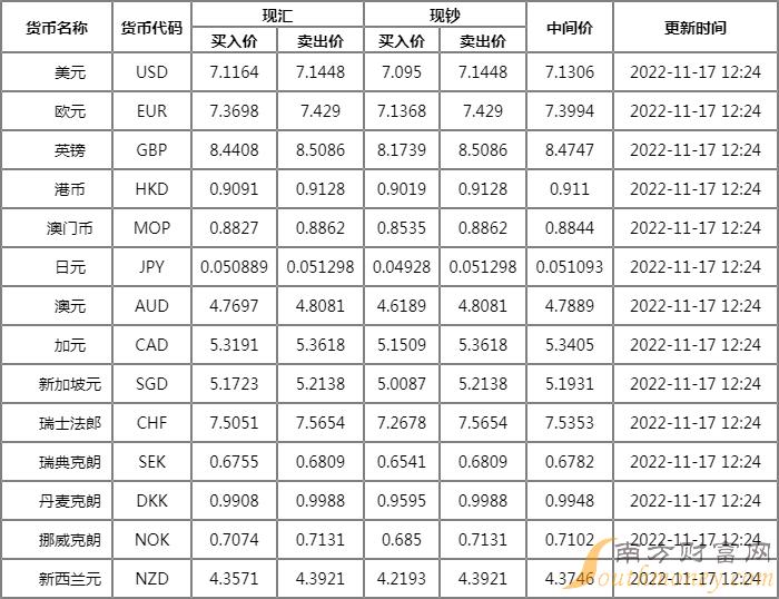 广发银行外汇牌价表一览 11月17日广发银行人民币汇率中间价多少?下面同南方财富网小语来看看。