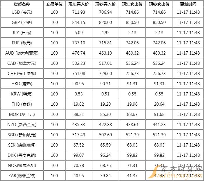 xm外汇:建设银行外汇牌价查询 11月17日建设银行人民币汇率表
