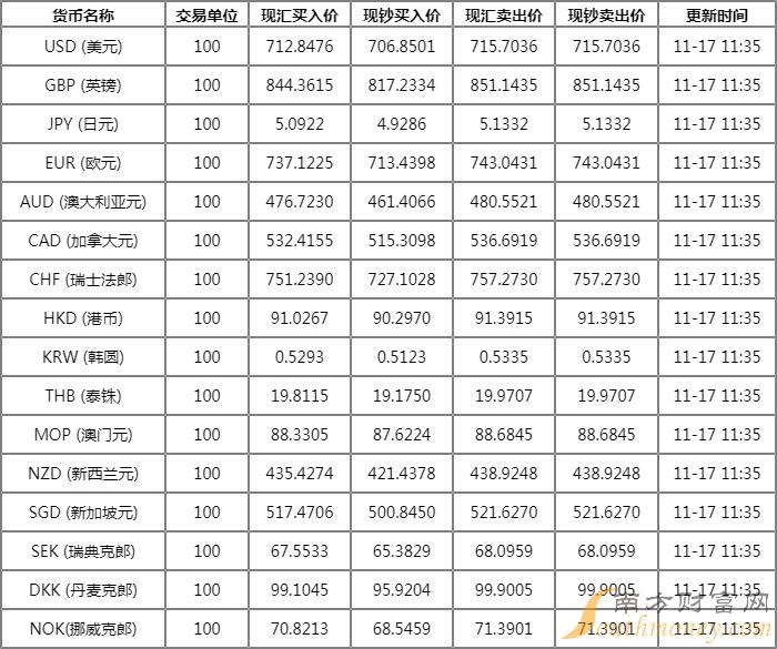 xm外汇:光大银行外汇牌价查询 11月17日光大银行人民币汇率中间价