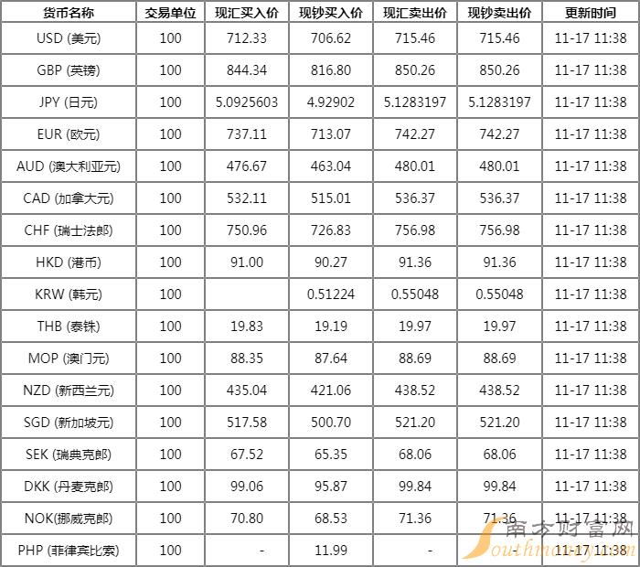 xm外汇:交通银行外汇牌价一览 11月17日交通银行人民币汇率表