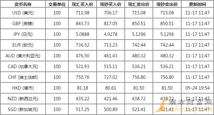 xm外汇:招商银行外汇牌价 11月17日招行人民币汇率中间价多少?