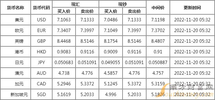 xm外汇:上海农村商业银行外汇牌价表2022年11月20日