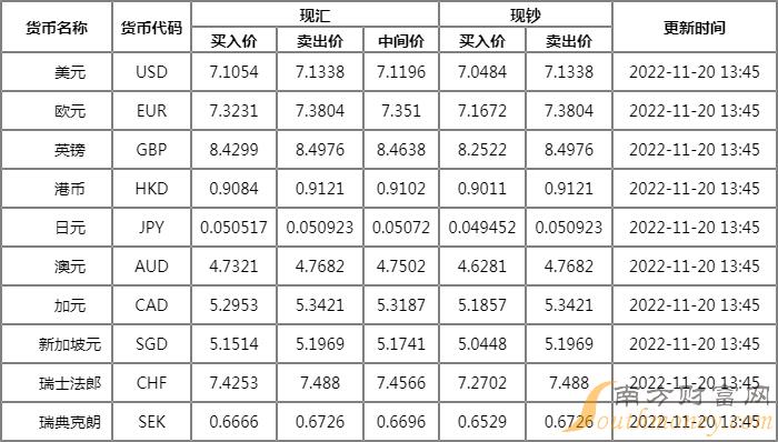 xm外汇:华夏银行外汇牌价表11月20日 华夏银行人民币汇率是多少?