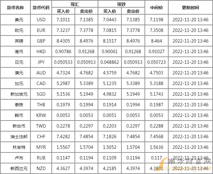 xm外汇:平安银行外汇牌价表11月20日 平安银行人民币对美元汇率多少?