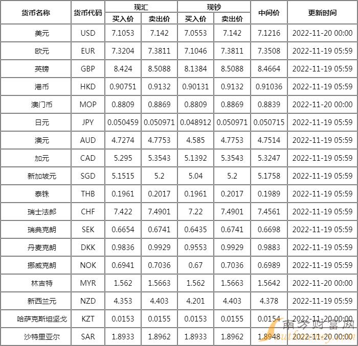 2022年11月18日人民币兑美元23:30收报7.1160,较上一交易日夜盘收涨391个基点。成交量329.46亿美元,较上一交易日增加15.49亿美元。