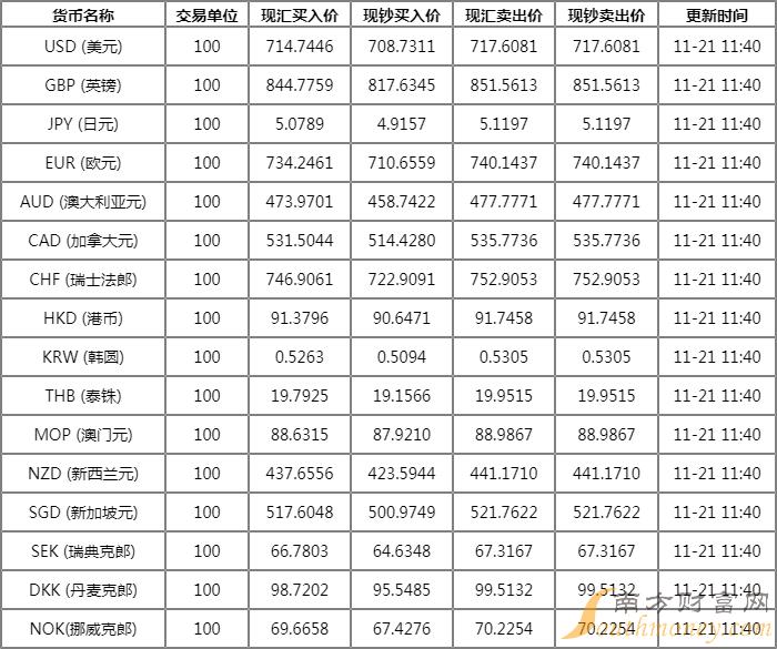 xm外汇:光大银行外汇牌价表11月21日 光大银行人民币汇率多少?