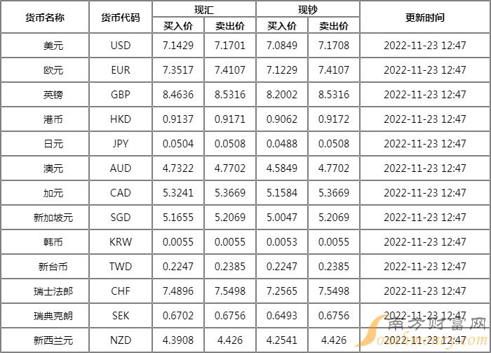 兴业银行外汇牌价表 11月23日兴业银行外币汇率多少?下面同南方财富网大咖君来看看