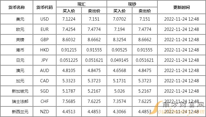浙商银行外汇牌价表 11月24日浙商银行人民币汇率多少?下面同南方财富网吾浦君来看看。