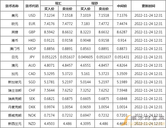 xm外汇:广发银行外汇牌价一览表 11月24日广发银行人民币汇率多少?