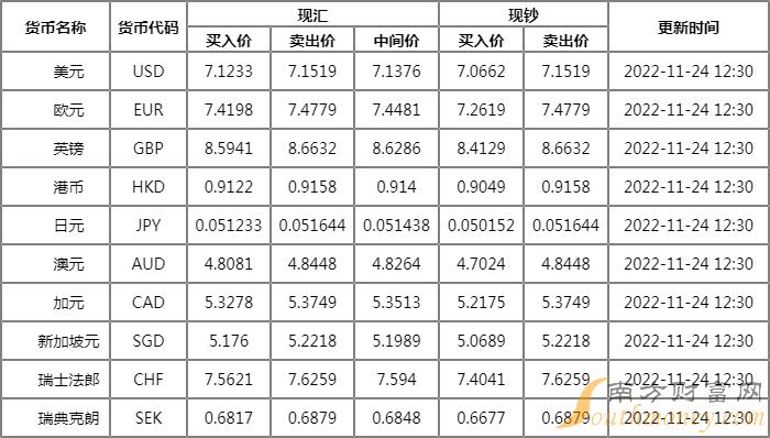 华夏银行外汇牌价表 11月24日华夏银行人民币汇率多少?下面同南方财富网呆鸟君来看看。