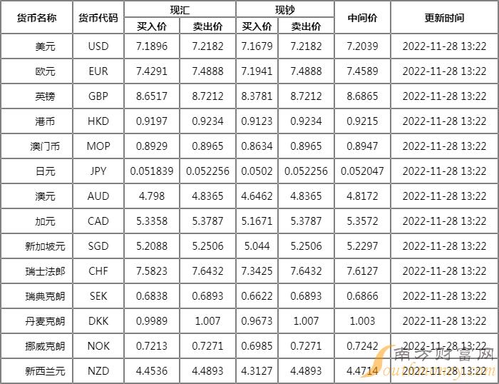 xm外汇:广发银行外汇牌价一览表 11月28日广发银行人民币汇率多少?