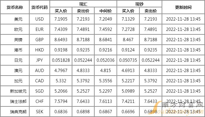 华夏银行外汇牌价表查询 11月28日华夏银行人民币汇率多少?下面同南方财富网小希来看看。