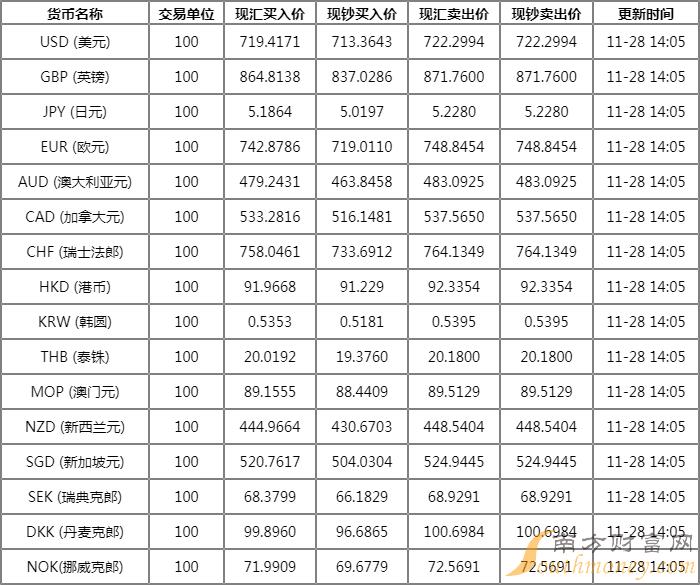xm外汇:光大银行外汇牌价表一览 11月28日光大银行人民币汇率多少?