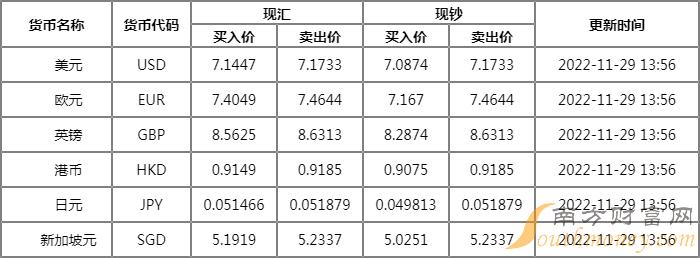 渤海银行外汇牌价表一览 11月29日渤海银行人民币对美元汇率多少?下面同南方财富网老白来看看。