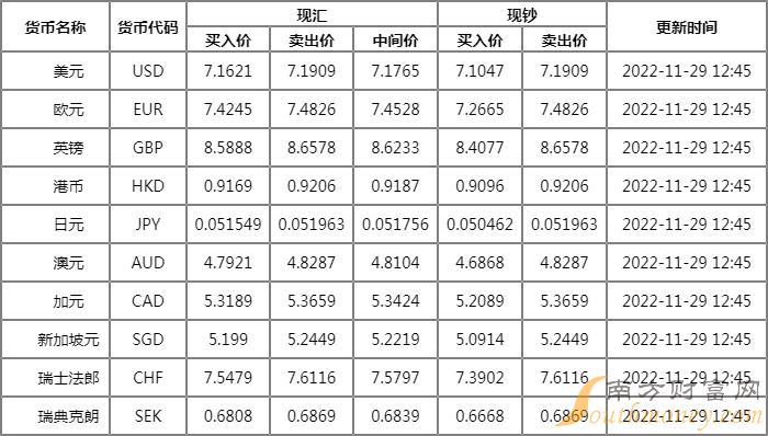 华夏银行外汇牌价表一览 11月29日华夏银行人民币对美元汇率多少?下面同南方财富网圈圈来看看。