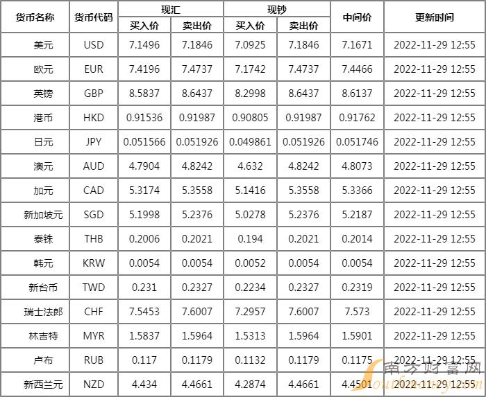 平安银行外汇牌价表一览 11月29日平安银行人民币对美元汇率多少?下面同南方财富网大咖君来看看。