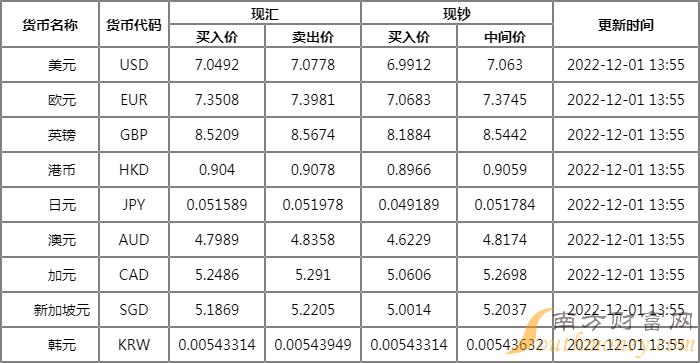 12月1日恒丰银行外汇牌价表 恒丰银行人民币对美元汇率是多少?下面同南方财富网呆鸟君来看看。