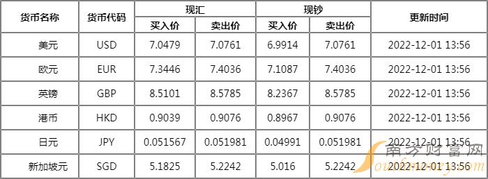 12月1日渤海银行外汇牌价表 渤海银行人民币对美元汇率是多少?下面同南方财富网小释来看看。