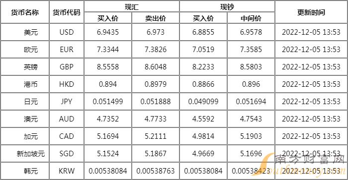 2022年恒丰银行外汇牌价查询表 12月5日恒丰银行人民币汇率是多少?下面同南方财富网畅想君来了解一下。