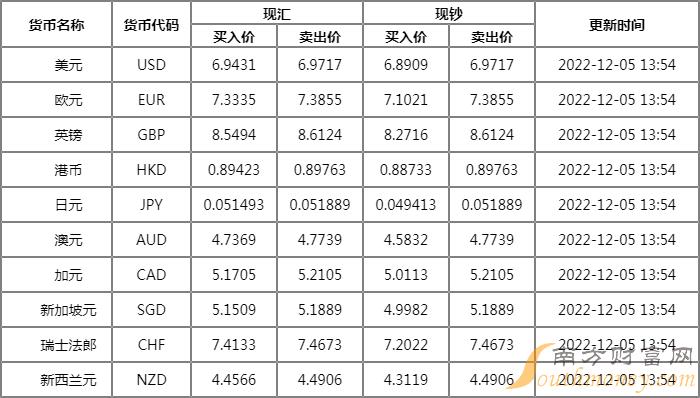 2022年浙商银行外汇牌价查询表 12月5日浙商银行人民币汇率是多少?下面同南方财富网搜罗君来了解一下。